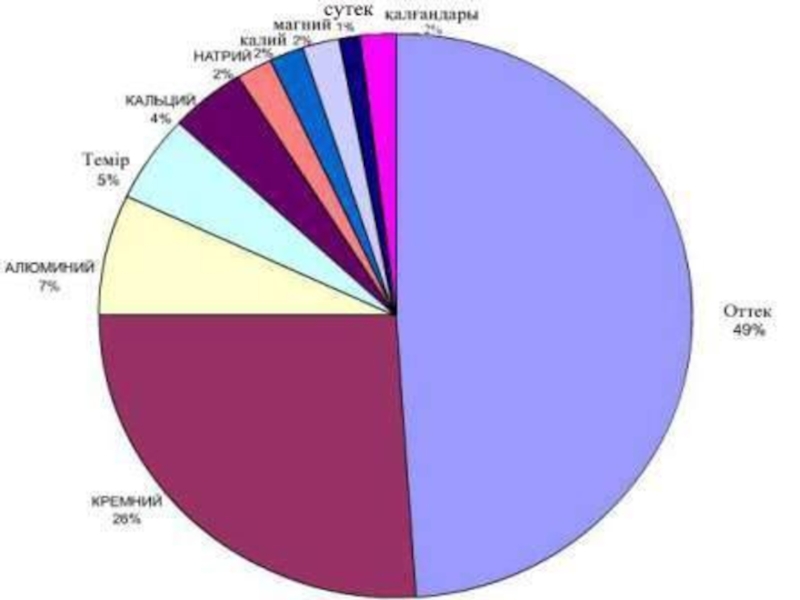 Жер қыртысында (массалық үлесі бойынша)