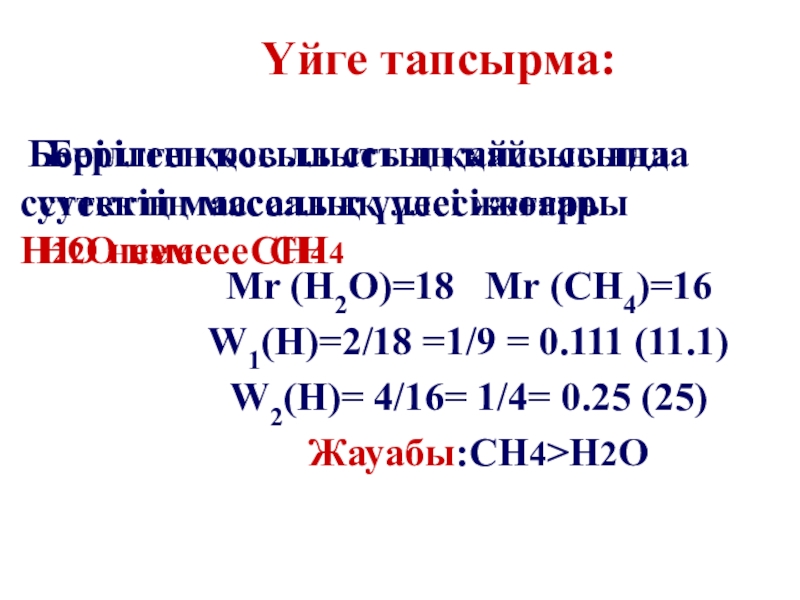 Жауабы:СН4>Н2О