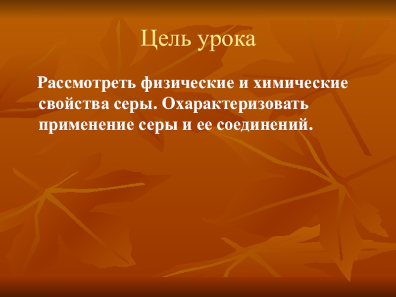 Рассмотреть физические и химические свойства серы. Охарактеризовать применение