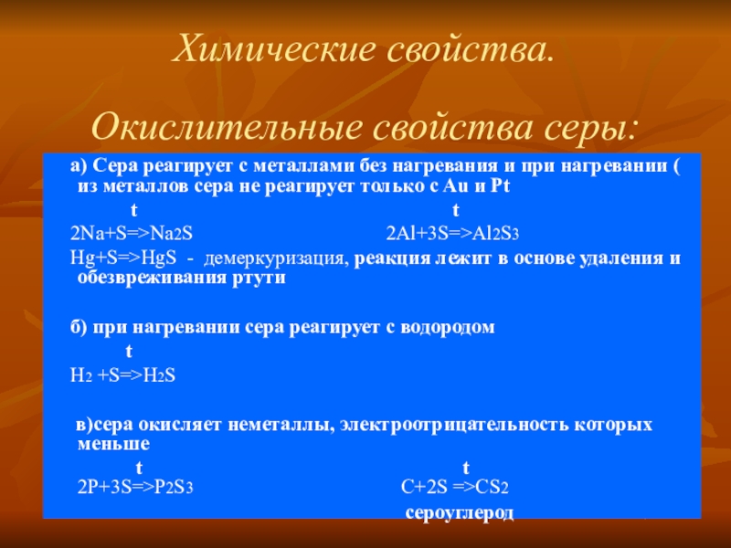 нагревания и при нагревании ( из металлов сера не реагирует только с Au и Pt