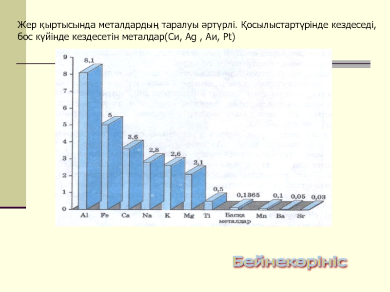 Li --- Mg -Ең белсенді металдар. Тұздары – хлоридтер, карбонат, сульфаттар.
