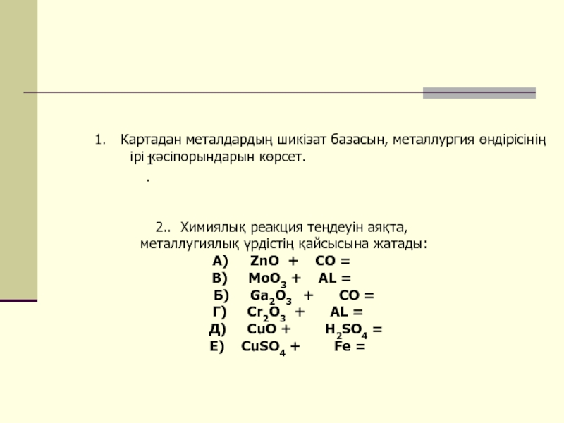 Картадан металдардың шикізат базасын, металлургия өндірісінің