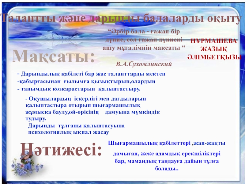 Дарындылық қабілеті бар жас таланттарды мектеп