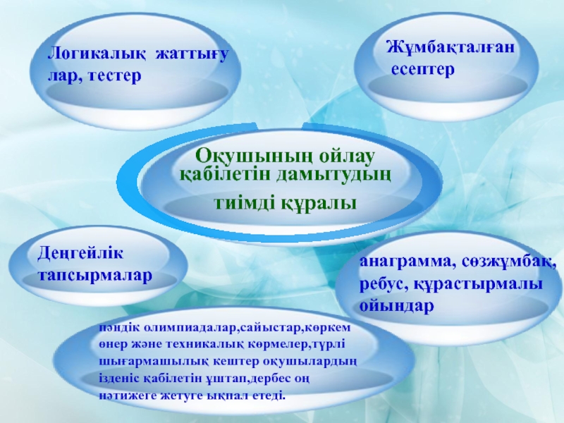- Оқушылардың іскерлігі мен дағдыларын