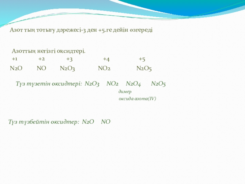 Түз түзетін оксидтері: N2O3 NO2 N2O4 N2O5