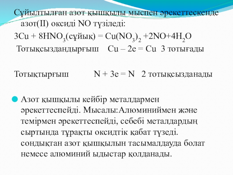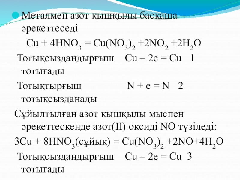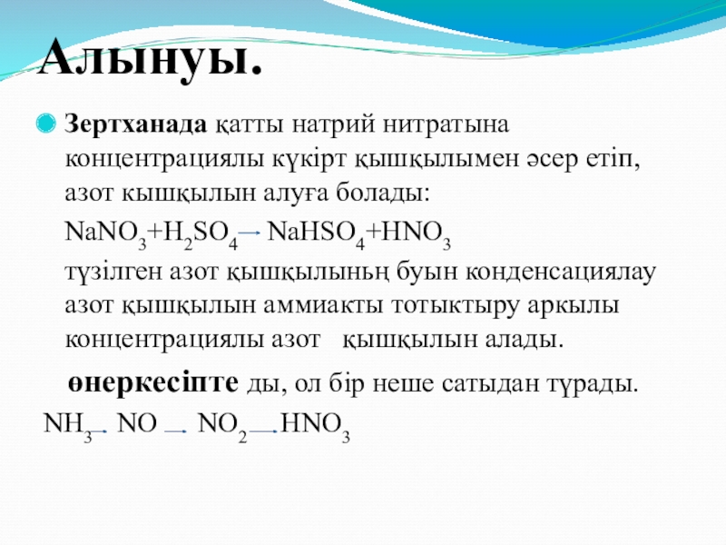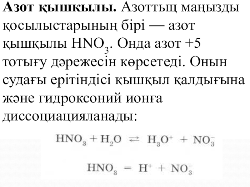Азот (IV) оксиді N02 оттек қатысында сумен әрекеттесіп, азот қышқылын түзеді: