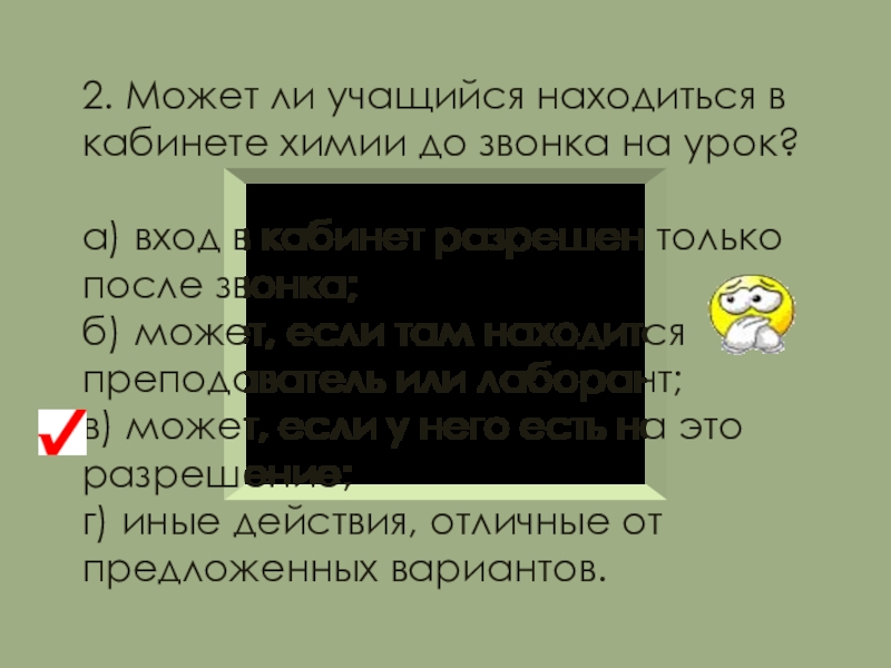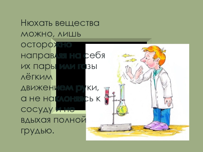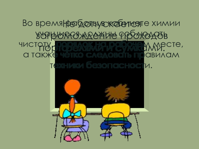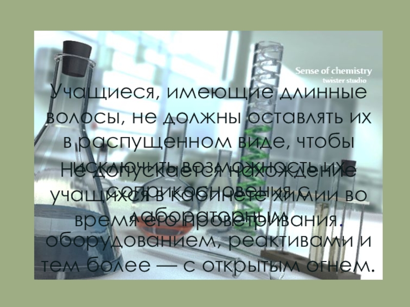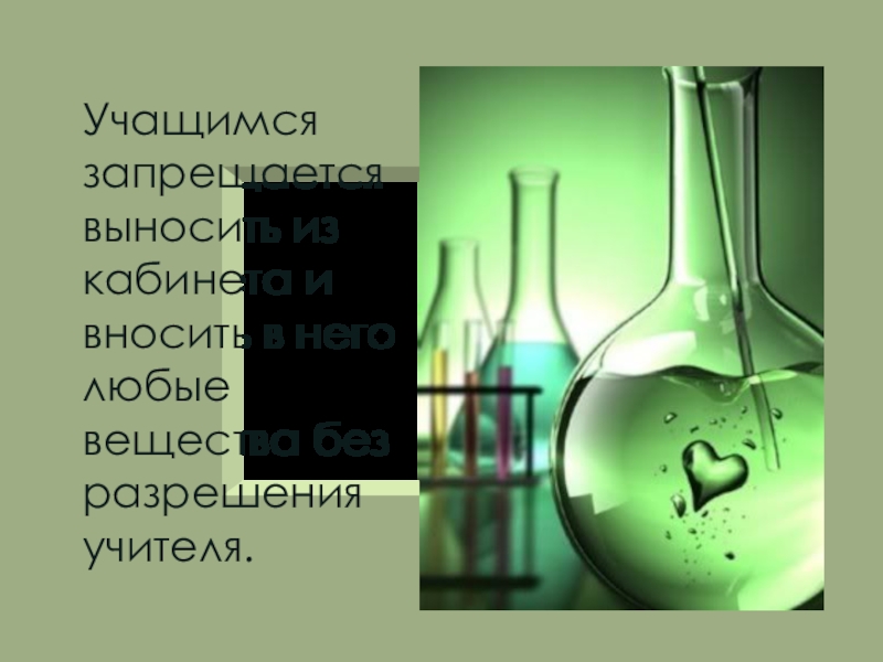 Не допускается нахождение учащихся в кабинете химии во время его проветривания.