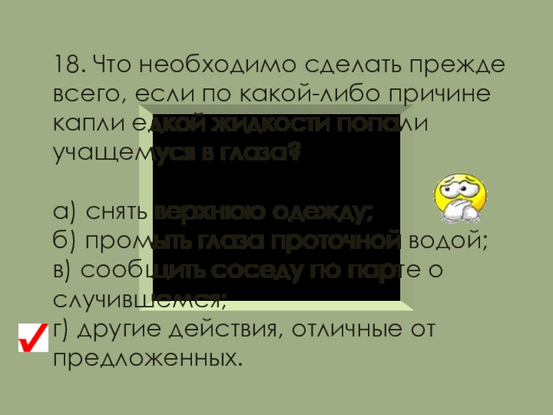 следить, чтобы вещества не попадали на кожу лица и рук, так как многие из них вызывают раздражение кожи и слизистых оболочек.