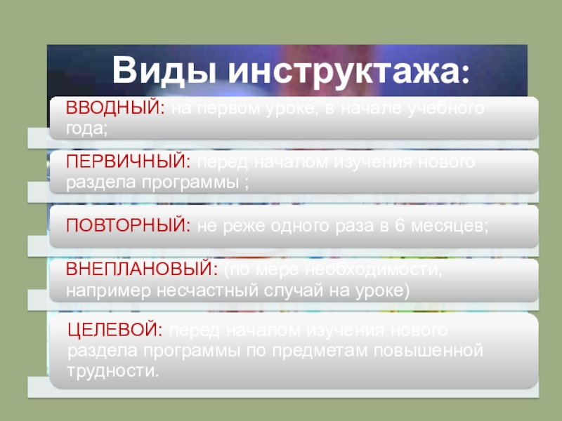 На первом уроке химии учитель проводит вводный инструктаж для учащихся, чтобы ознакомить их с правилами поведения в кабинете, правилами техники безопасности и гигиены труда, пожарной безопасности, предостеречь от опасностей, с которыми можно встретиться в процессе работы.