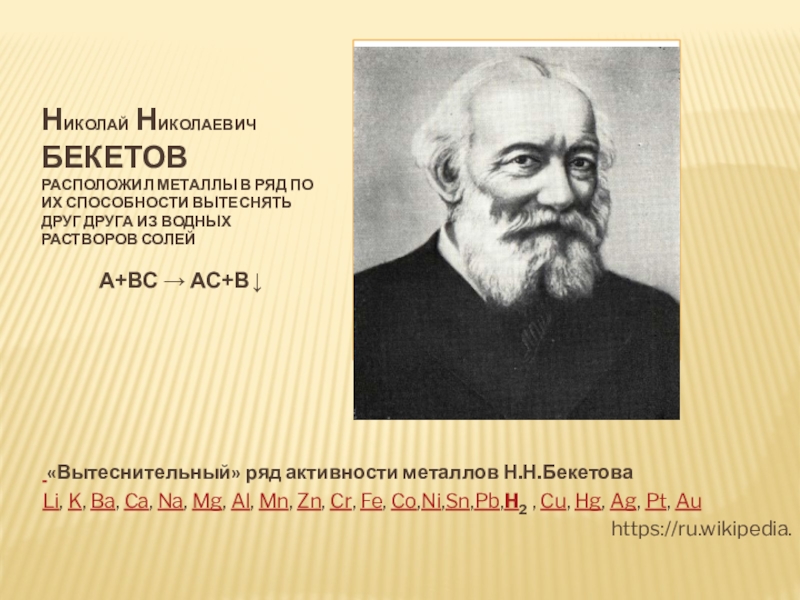 «Вытеснительный» ряд активности металлов Н.Н.Бекетова