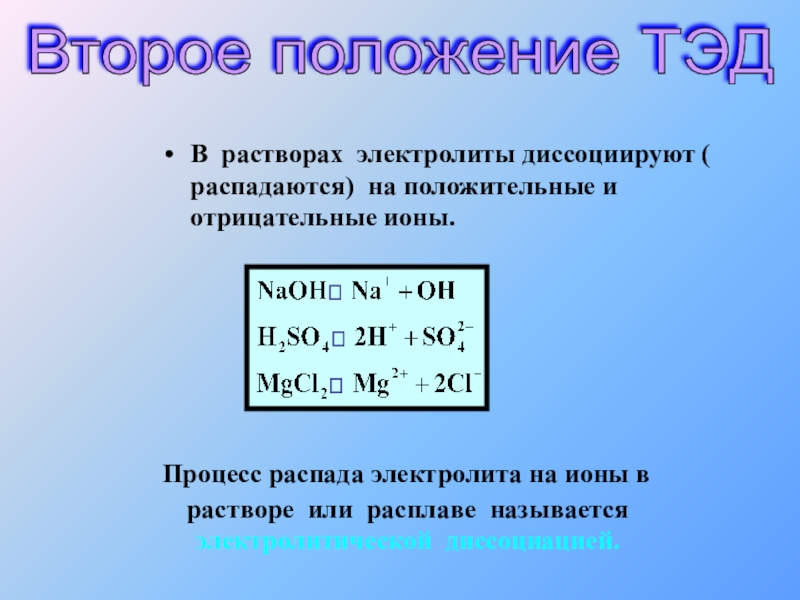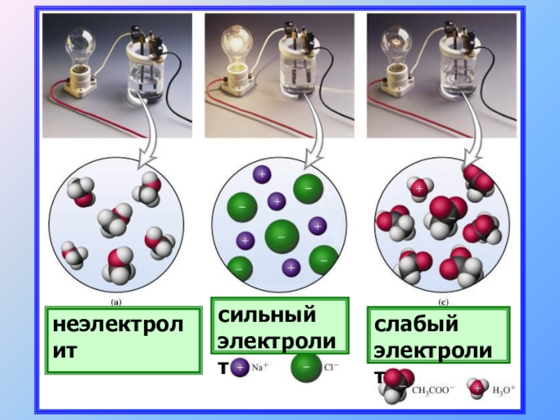 процесс растворения электролитов сопровождается образованием заряженных частиц, способных проводить электрический ток.