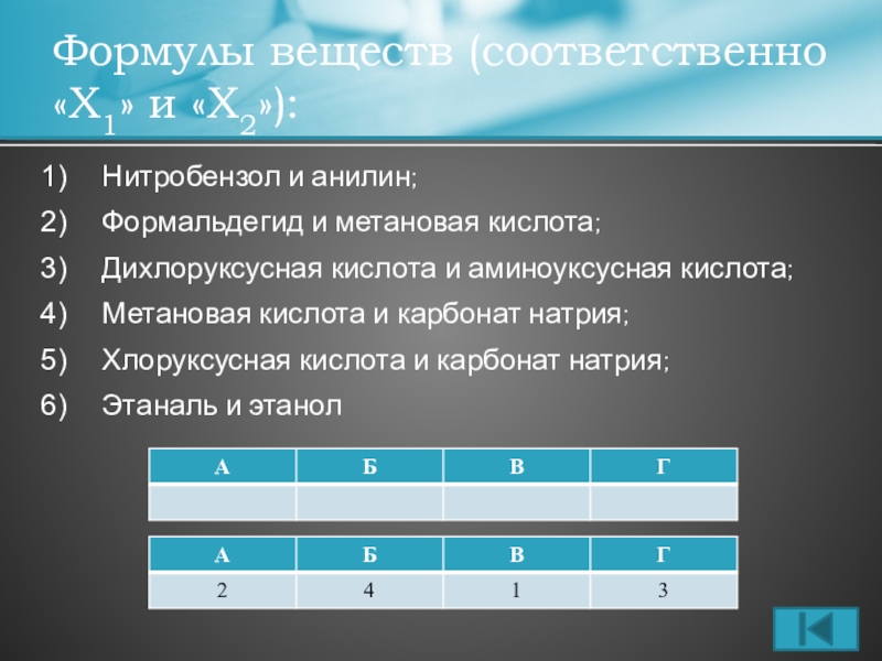 Формулы веществ (соответственно «Х1» и «Х2»):