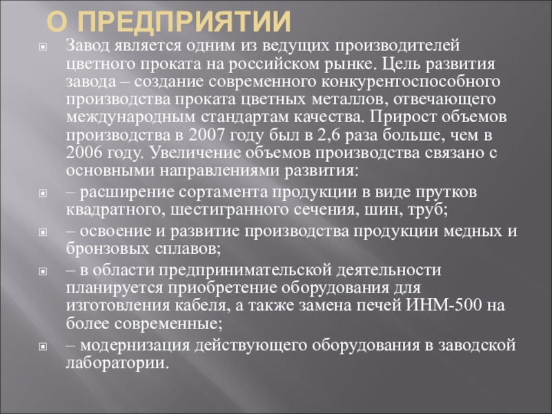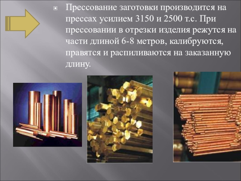 Производство тянутых и прессованных прутков размером более 25 мм в отрезках.