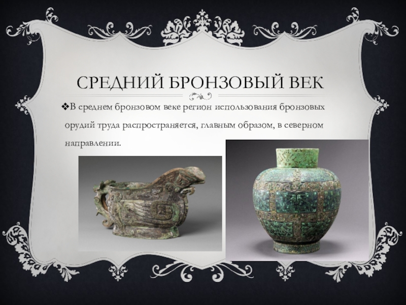 Средний бронзовый векВ среднем бронзовом веке регион использования бронзовых орудий труда распространяется, главным образом, в северном направлении.