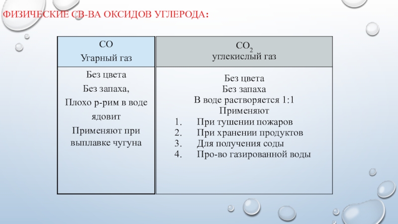 CO2 + H2O = H2CO3 – слабая угольная кислота