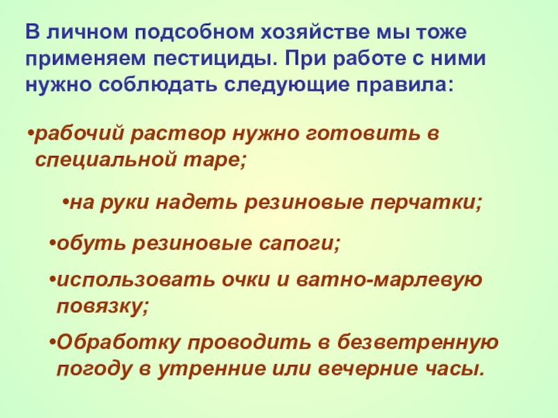 Обработку проводить в безветренную погоду в утренние или вечерние часы.
