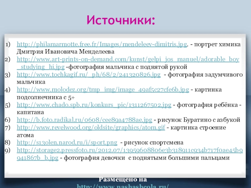Это сайт презентаций, где можно хранить и обмениваться своими презентациями, докладами, проектами, шаблонами в формате PowerPoint с другими пользователями. Мы помогаем школьникам, студентам, учителям, преподавателям хранить и обмениваться учебными материалами.