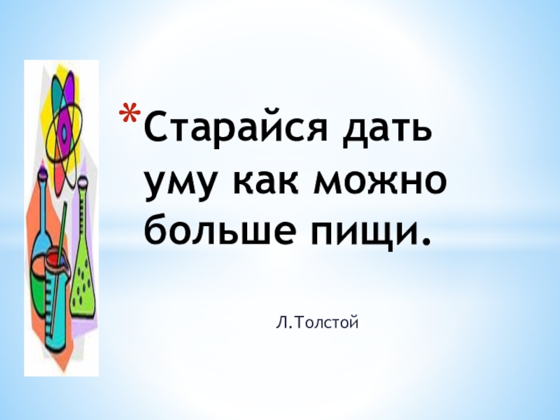 Л.ТолстойСтарайся дать уму как можно больше пищи.
