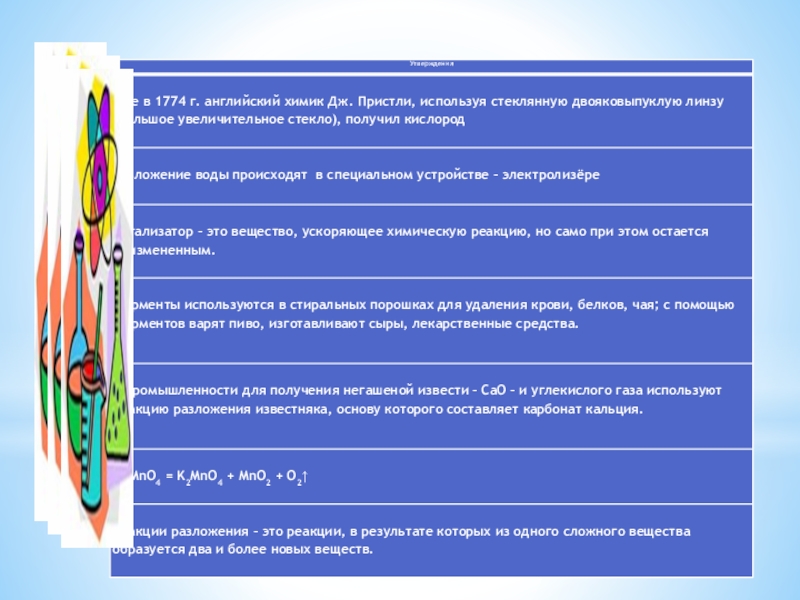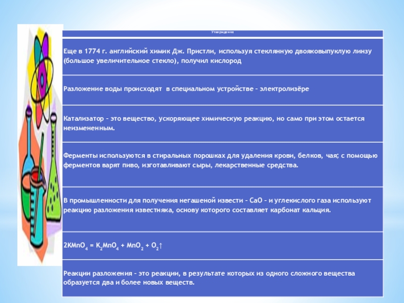 Презентация, доклад на тему Урок химии, 8 класс, Реакции разложения с использованием сингапурской методики