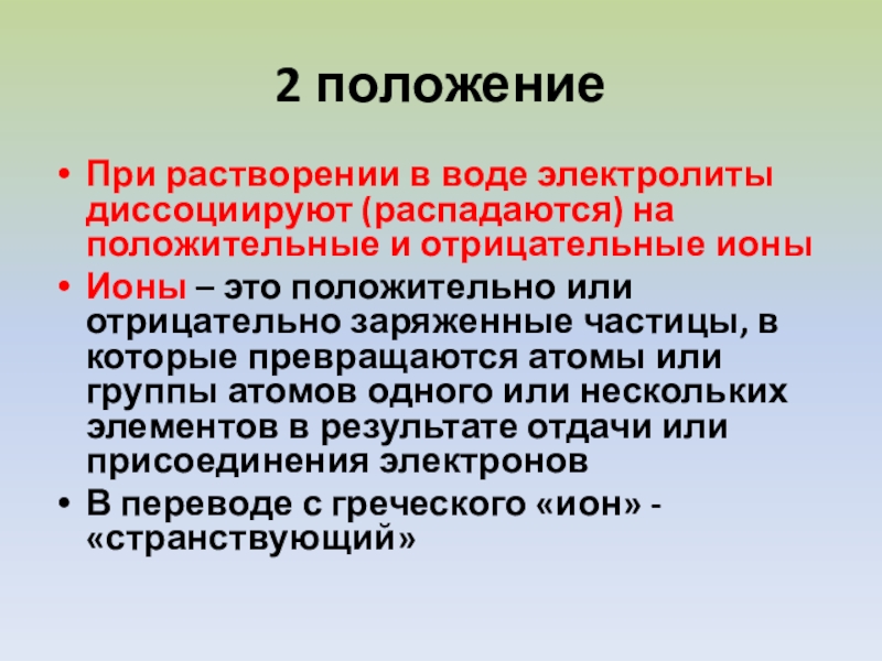 При растворении в воде электролиты диссоциируют (распадаются) на положительные и отрицательные ионы
