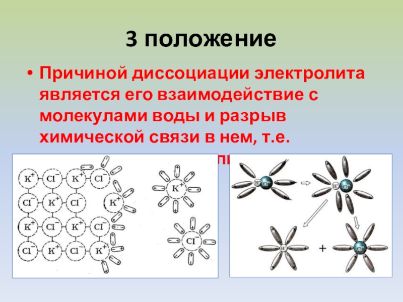 Причиной диссоциации электролита является его взаимодействие с молекулами воды и