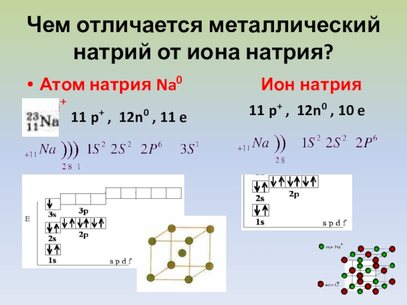 Слайд 6Чем отличается металлический натрий от иона натрия?