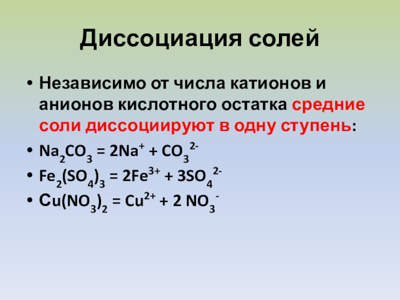 Независимо от числа катионов и анионов кислотного остатка средние соли