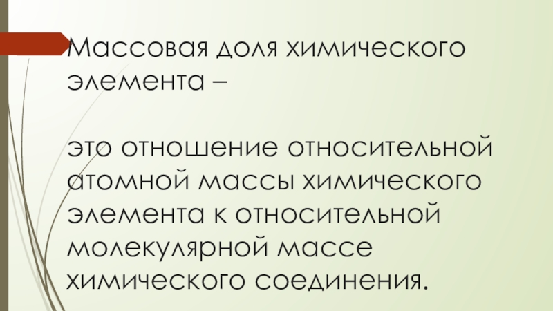 Слайд 6Массовая доля химического элемента – это отношение относительной атомной массы химического элемента