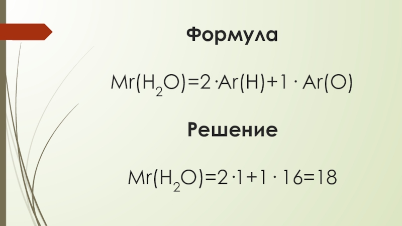 Слайд 3Формула Mr(Н2О)=2·Ar(H)+1· Ar(O) Решение Mr(Н2О)=2·1+1· 16=18