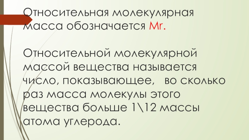 Слайд 2Относительная молекулярная масса обозначается Мr. Относительной молекулярной массой вещества называется число, показывающее,