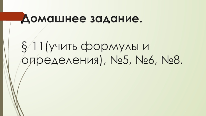 Слайд 9Домашнее задание. § 11(учить формулы и определения), №5, №6, №8.