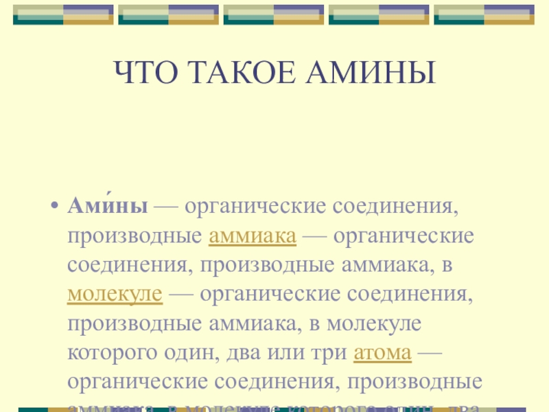 в молекуле — органические соединения, производные аммиака, в молекуле которого один, два или три атома — органические соединения, производные аммиака, в молекуле которого один, два или три атома водорода — органические соединения, производные аммиака, в молекуле которого один, два или три атома водорода замещены на углеводородные радикалы.