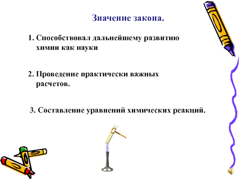Масса веществ, ступающих в реакцию, равна массе веществ, образующихся в результате реакции.