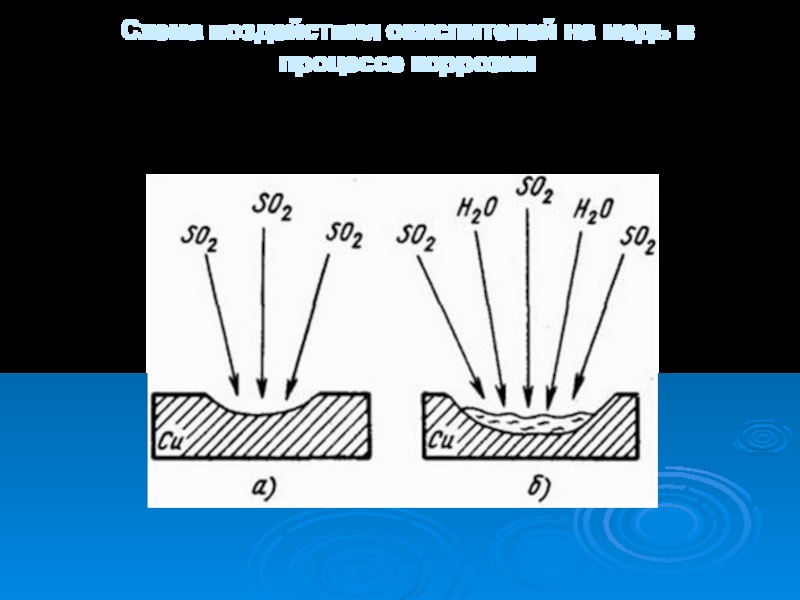 Слайд 15Схема воздействия окислителей на медь в процессе коррозии