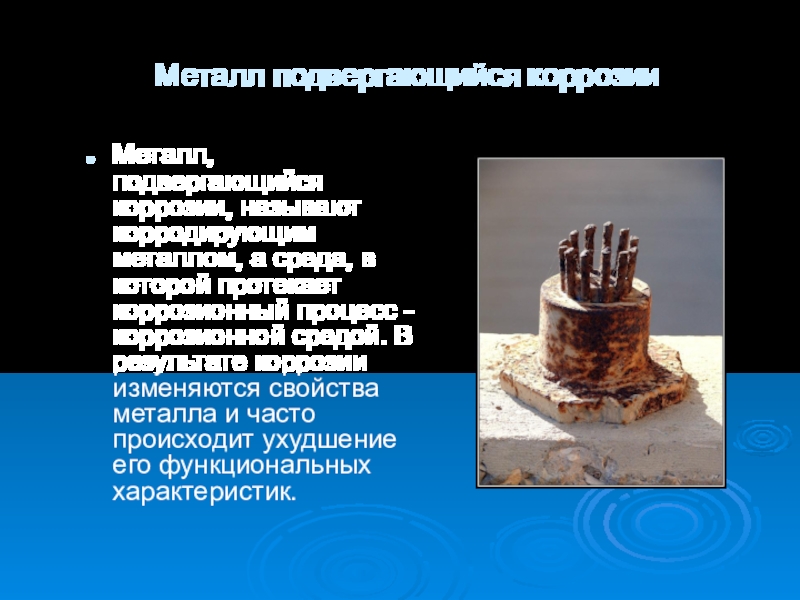 Слайд 4Металл подвергающийся коррозии