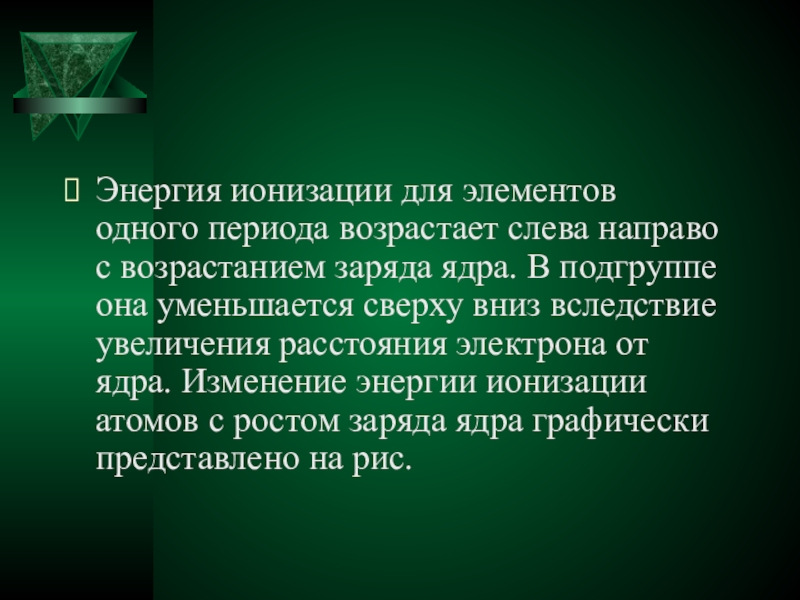 Энергия ионизации для элементов одного периода возрастает слева направо с возрастанием