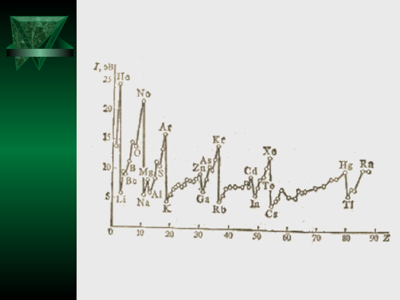 заряда ядра. В подгруппе она уменьшается сверху вниз вследствие увеличения расстояния электрона от ядра. Изменение энергии ионизации атомов с ростом заряда ядра графически представлено на рис.