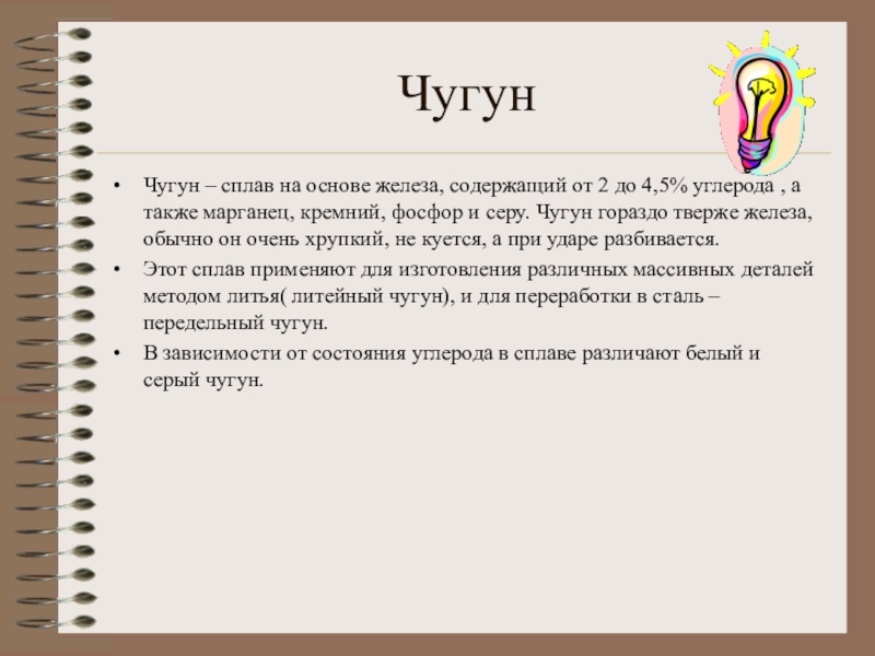 Чугун – сплав на основе железа, содержащий от 2 до 4,5%