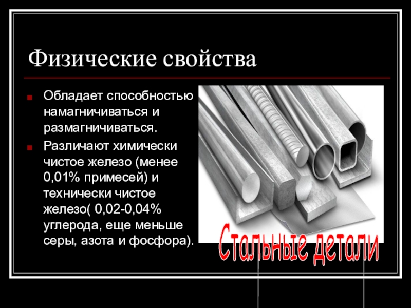примесей) и технически чистое железо( 0,02-0,04% углерода, еще меньше серы, азота и фосфора).