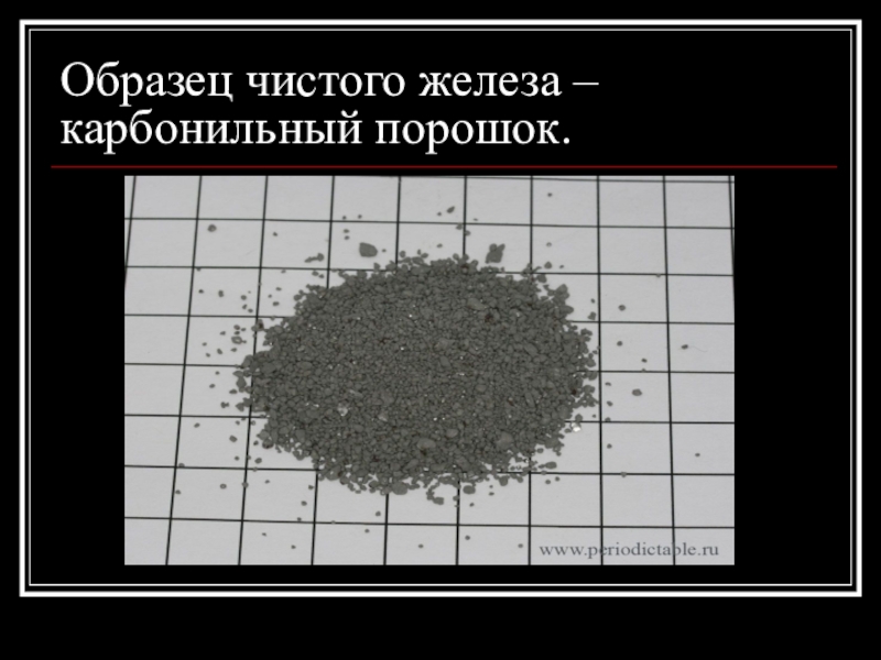Слайд 8Образец чистого железа – карбонильный порошок.