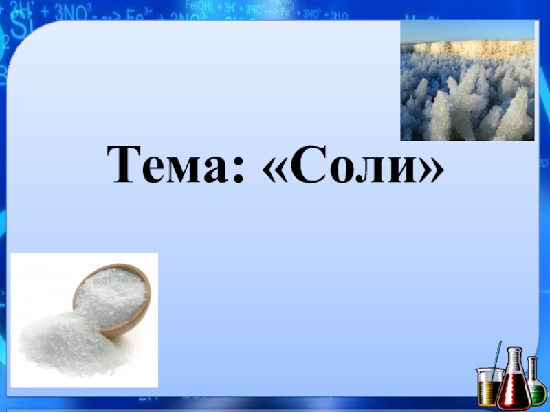 1. Соли – сложные вещества, состоящие из ионов металлов и кислотных остатков.