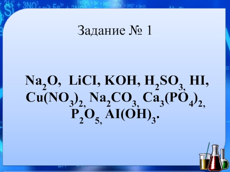 Na2O, LiCI, KOH, H2SO3, HI, Cu(NO3)2, Na2CO3,