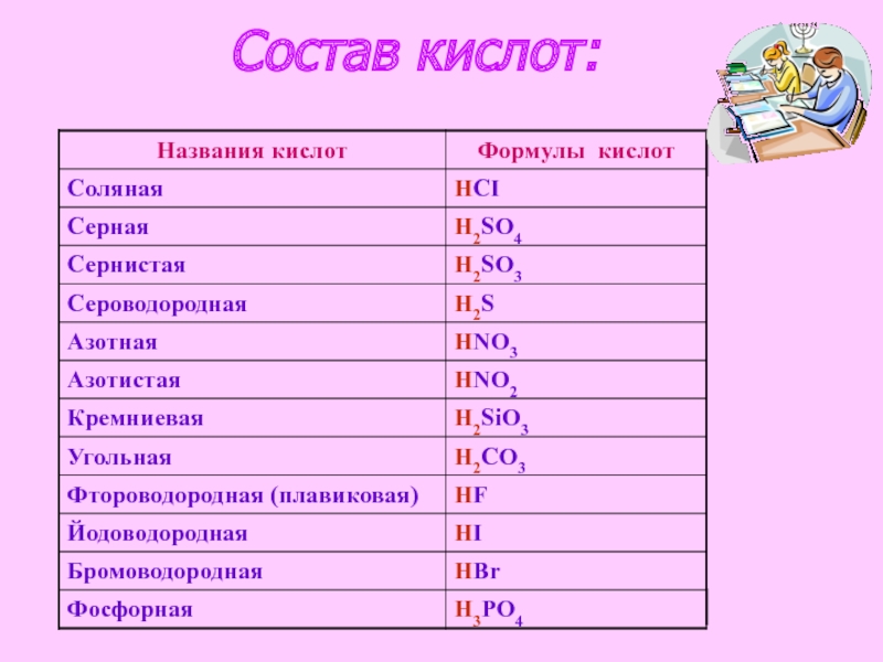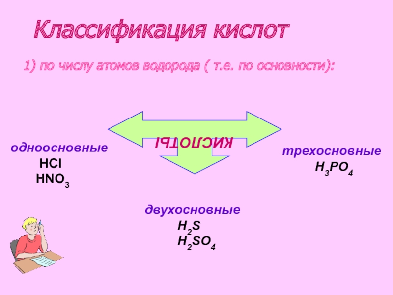 Заряд кислотного остатка всегда отрицателен и равен числу атомов водорода в кислоте. Число атомов водорода в кислоте называется основностью.