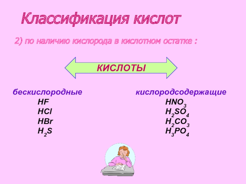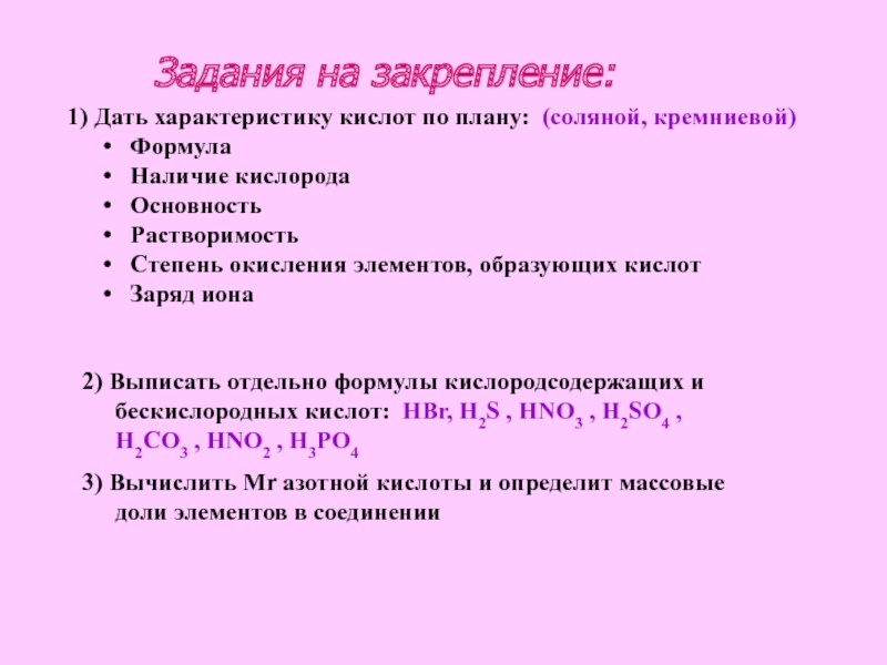 2) Выписать отдельно формулы кислородсодержащих и бескислородных кислот: HBr, H2S , HNO3 , H2SO4 , H2CO3 , HNO2 , H3PO4