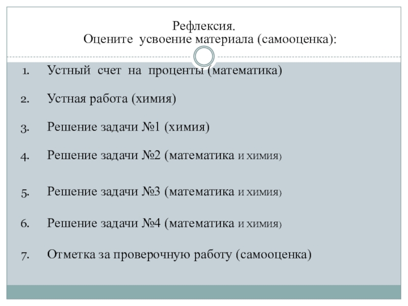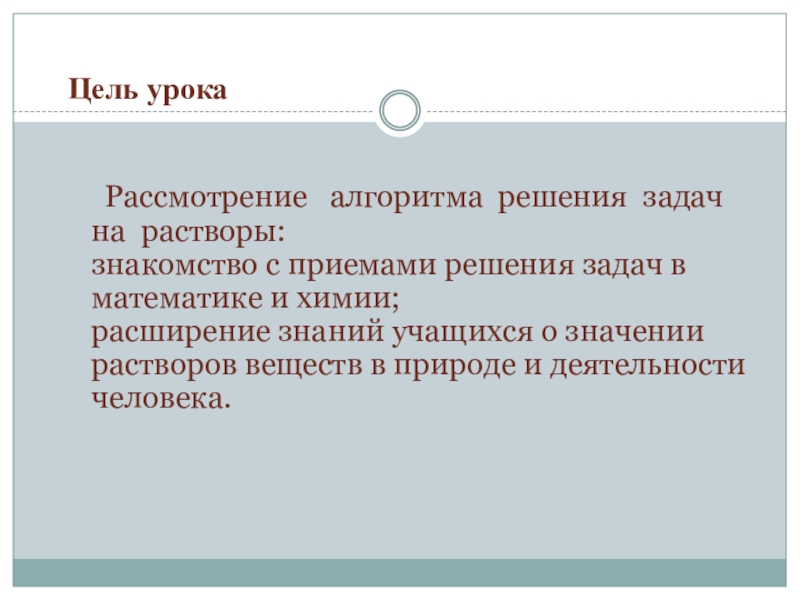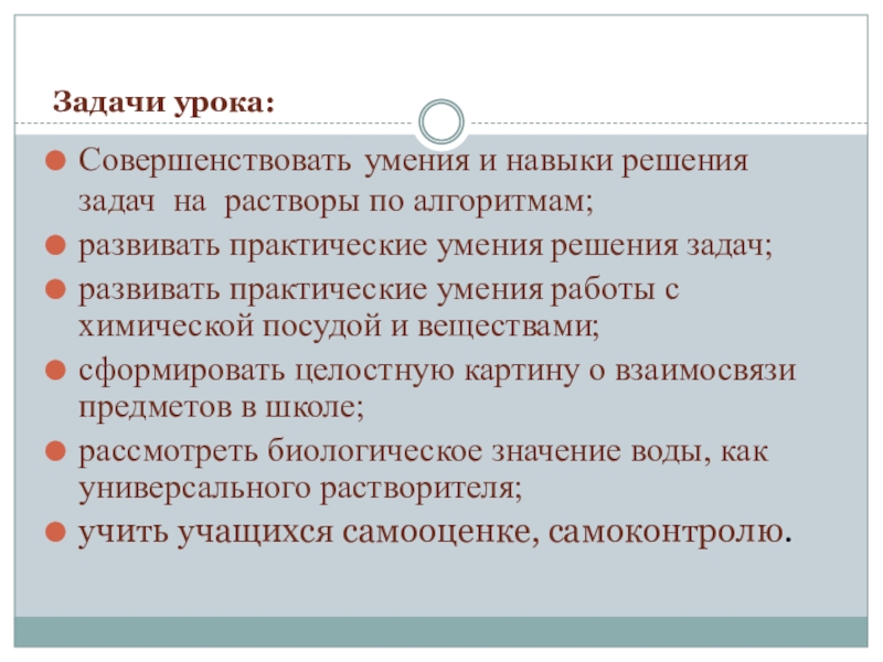 Совершенствовать умения и навыки решения задач на растворы по алгоритмам;