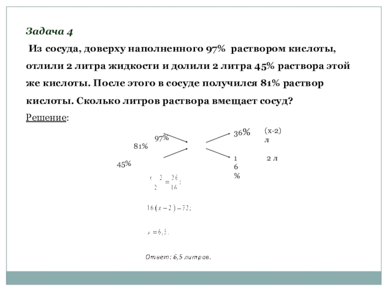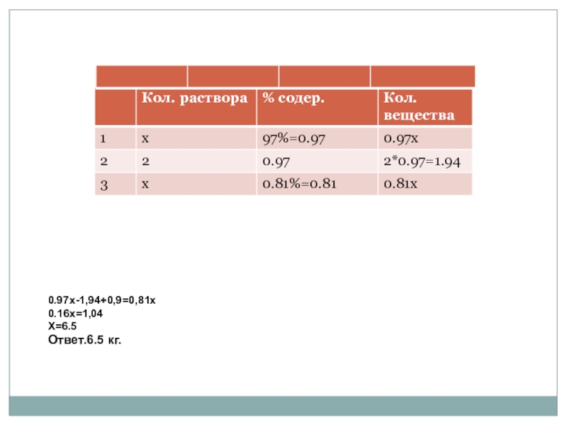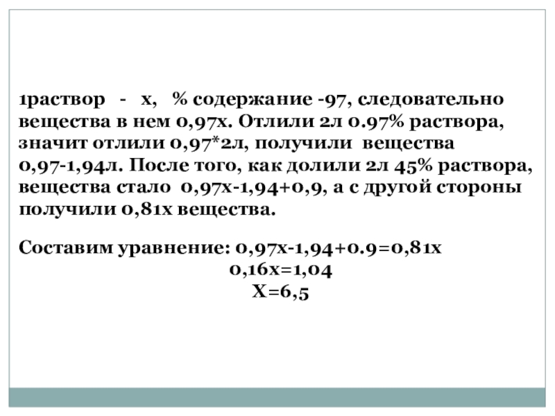Слайд 361раствор - х, % содержание -97, следовательно вещества