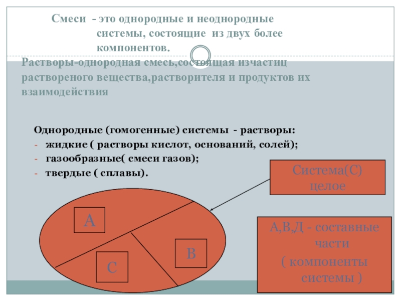 Растворы-однородная смесь,состоящая изчастиц раствореного вещества,растворителя и продуктов их взаимодействия