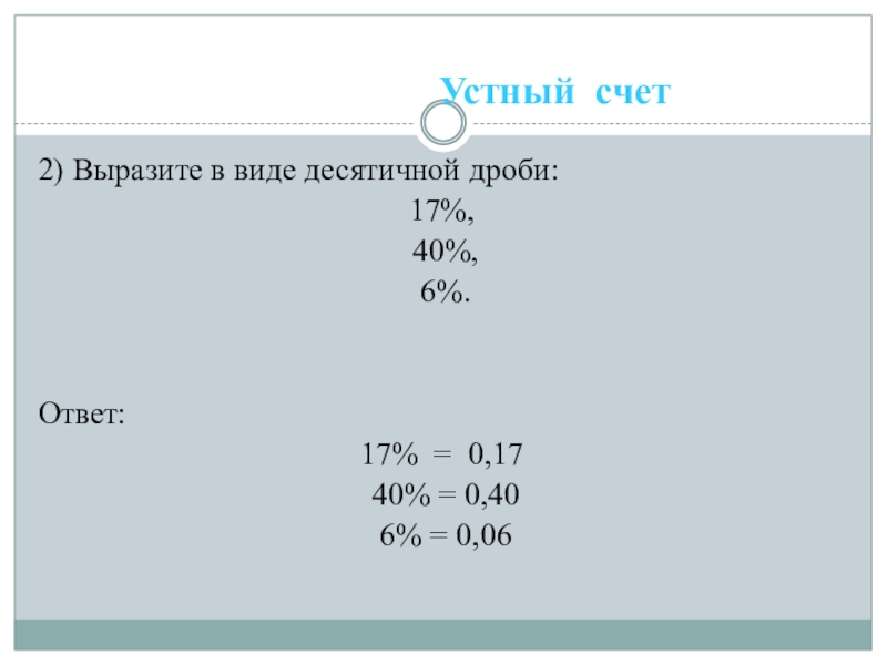 3) Выразите в виде обыкновенной дроби 25%, 30%, 7%