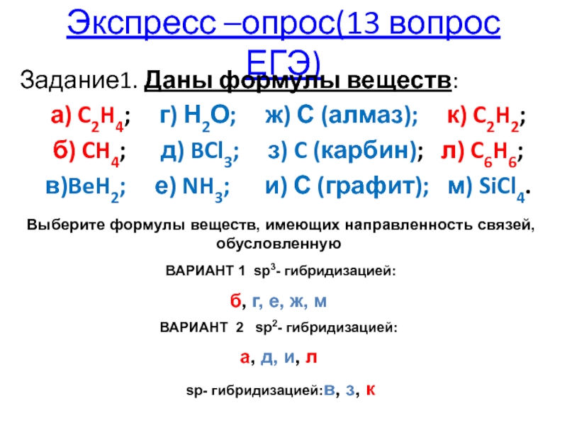 Выберите формулы веществ, имеющих направленность связей, обусловленную