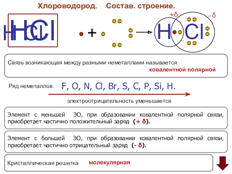 Элемент с меньшей ЭО, при образовании ковалентной полярной связи, приобретает частично положительный заряд (+ δ).